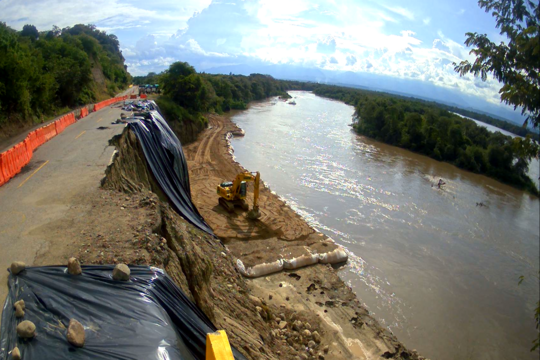 Recuperación de la banca via PR62 Protección con Megabolsas Sobre rivera del rio Magdalena Concesión de Alto Magdalena.